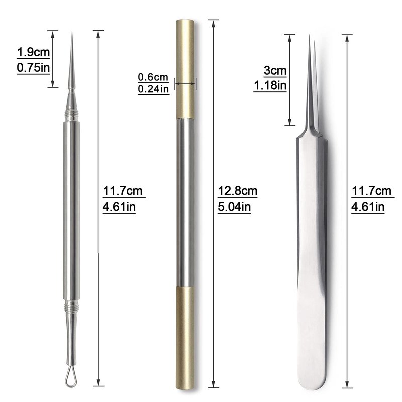 They are easy to grip, high grade material, can be used for both normal skin or allergic skin, very comfortable touching and not easy to deform, sharp and sturdy. Face care was never easy, and they are effortlessly remove pimples, blackhead, whitehead, pimple, comedone zit, deep cystic acne, even deep stubborn pimple.