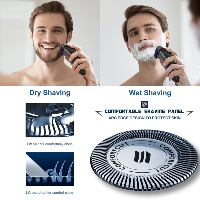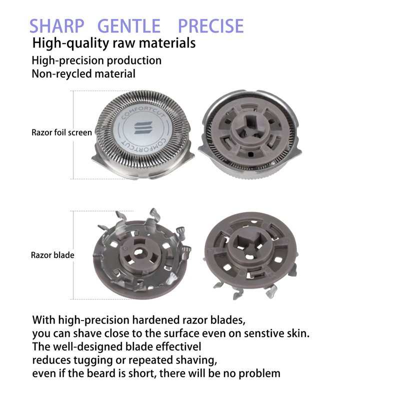 - 【Material】Stainless steel blades for comfortably close shave, washable, sharp and durable, safe to your skin. Mens electric shavers head blades are dual precision cutting system with lift and cut technology.