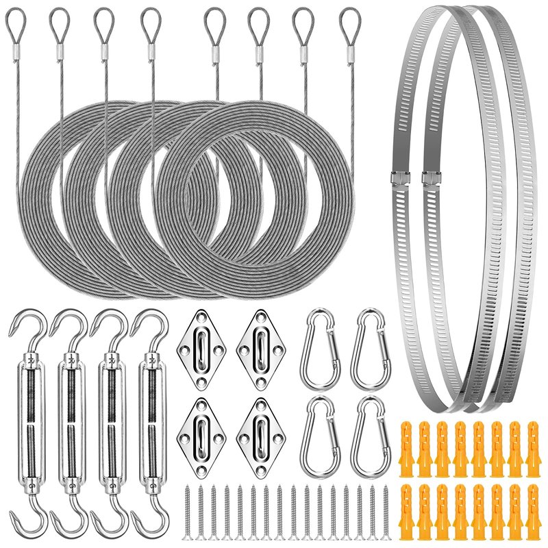 - The Most Complete Accessories on the Market: This is an all-inclusive shade sail hardware kit! With its 50 accessories, you will get the necessary tools for all aspects of hang, fit, fix, etc. This is your one-stop solution for hanging shade sails! No need to spend time and money looking around, you have everything you need!