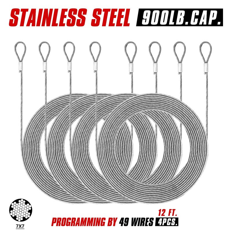 12 Feet Coated Stainless Steel Wire Rope x 4pcs