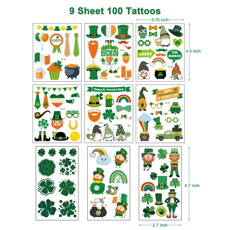 - Long Last: Our St. Patrick's Day tattoos are waterproof and long last, you can choose different tattoo pattern you like to paste on your body without causing you pain.