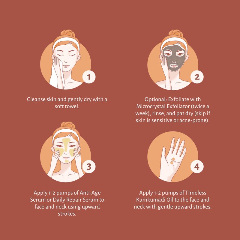 - Embrace Timeless Skin with A Good Cause – 100% of the profits from every bottle of Timeless Kumkumadi Oil are donated to support meaningful causes. Unlock the key to timeless beauty, while you become a part of our commitment in making a positive impact. Incorporate it into your daily regimen and witness the magic as your complexion shines with a golden glow that’s just as bright now as it was in ancient times.