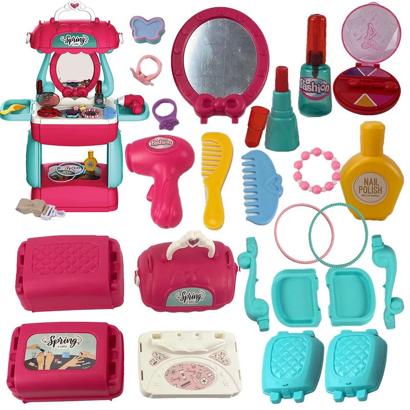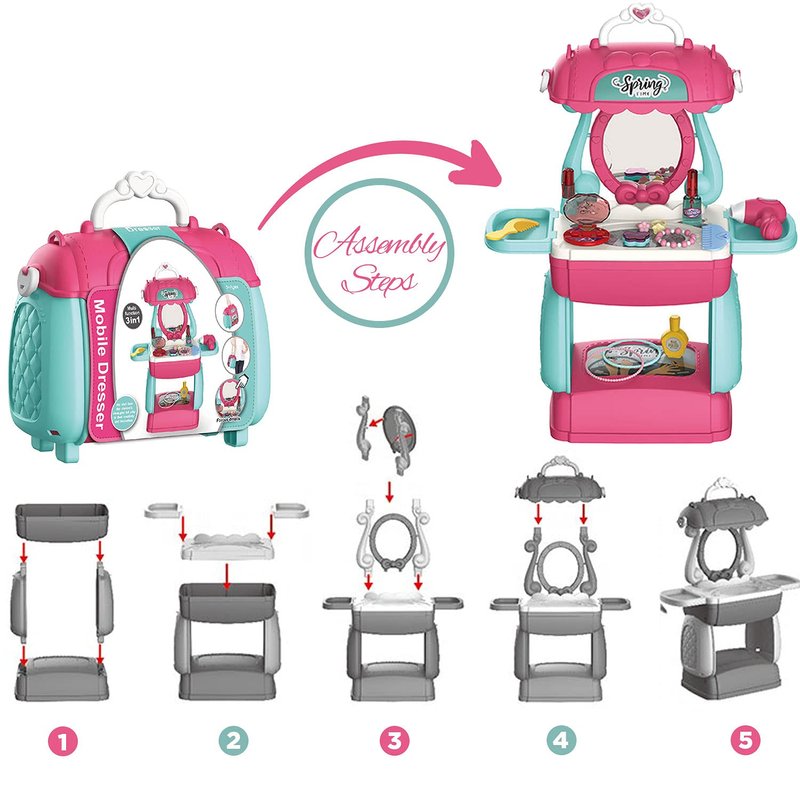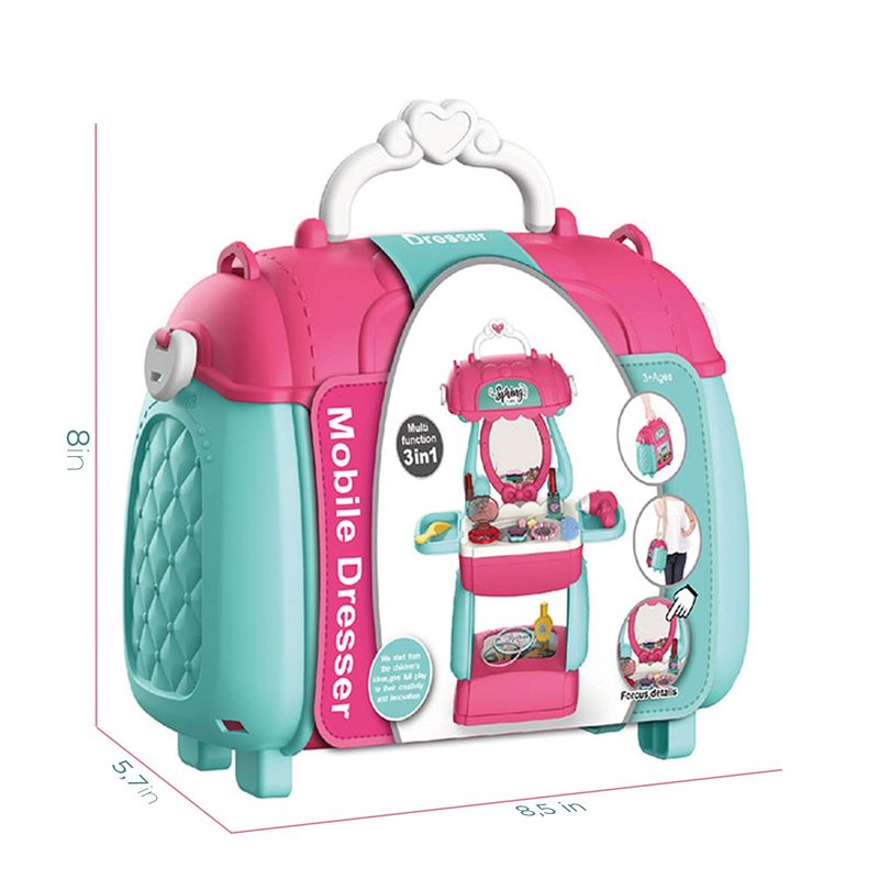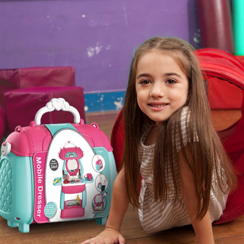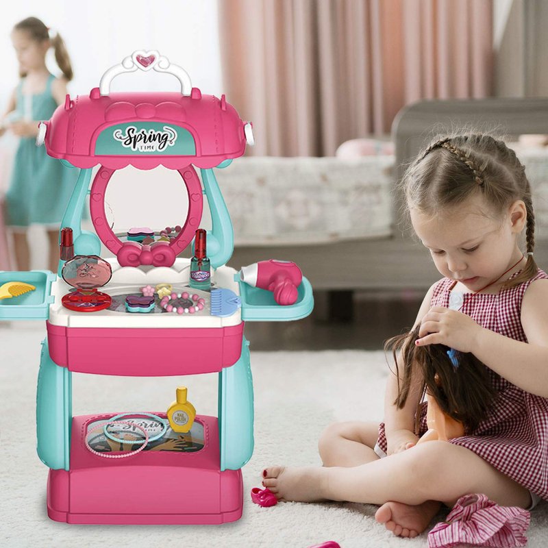 Shape28 Beauty Bag Playset Pretend Makeup Toy Set 44 Pieces Children Makeup Toy Princess Dressing Table Kids Vanity (DarkPink)