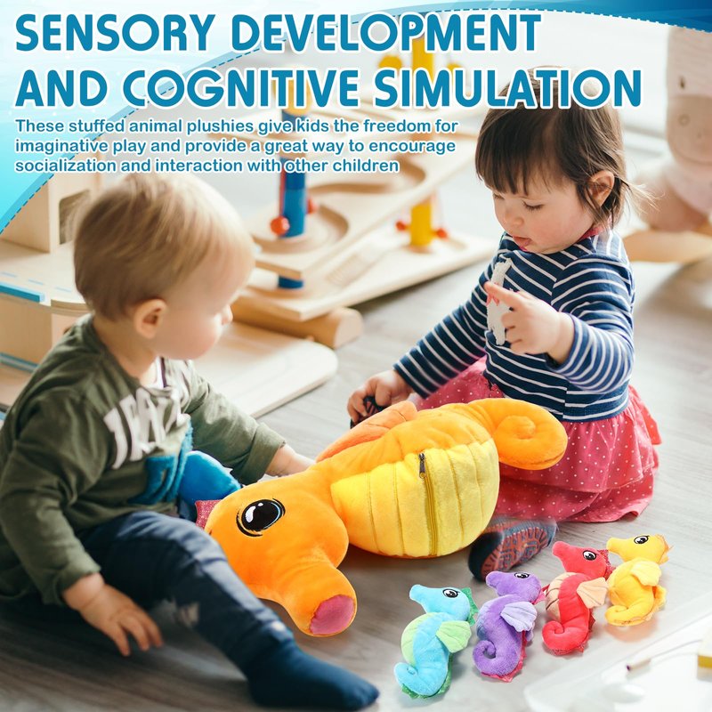 - Interactive Zipper Feature: unzip the mommy seahorse's tummy to reveal a secret she can give birth to up to 4 babies; This innovative play fosters creativity, improves social skills, and makes playtime truly special
