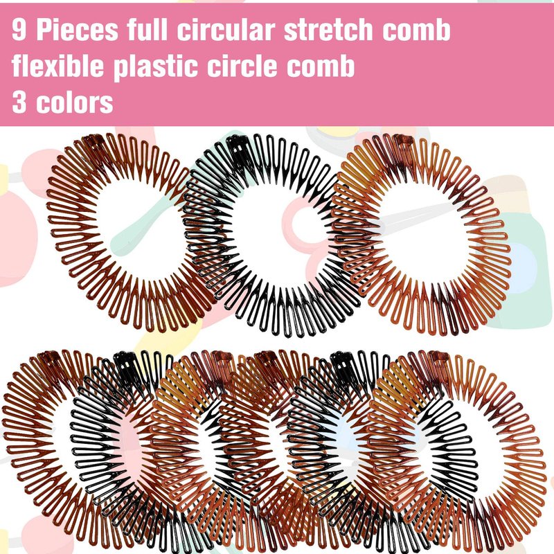 Shappy 9 Pieces Full Circular Stretch Comb Flexible Plastic Circle Comb Stretch Hair Comb Headband Hairband Holder for Women Girls, 3 Colors