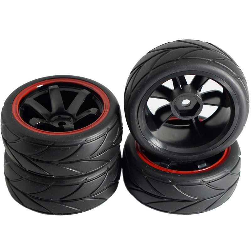 ShareGoo 12mm Hex Wheel Rims & Rubber Tires Compatible with Redcat HPI Tamiya HSP RC 1/10 on-Road Racing Touring Car (Pack of 4)