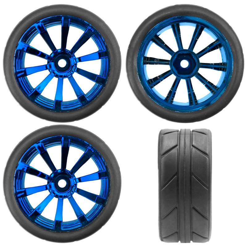 ShareGoo OD 2.55" Rubber Tires w/Plastic Wheel Rims 12mm Hex Compatible with HSP Tamiya Kyosho Traxxas Sakura WLtoys 1/10 RC On Road Racing Touring Car (Blue)