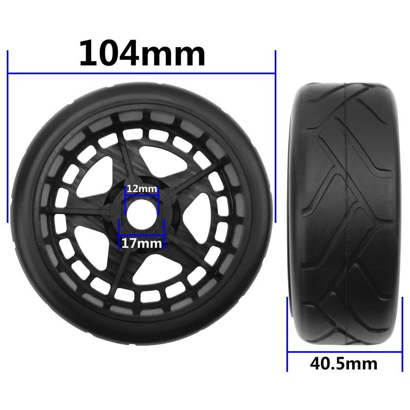- The 1/8 RC Buggy Tires Set Outer Diameter: 4.09" (104mm), Tire Width: 1.59" (40.5mm), Hex Size: 0.67" (17mm), Hub Center Hole Diameter: 0.47" (12mm).
