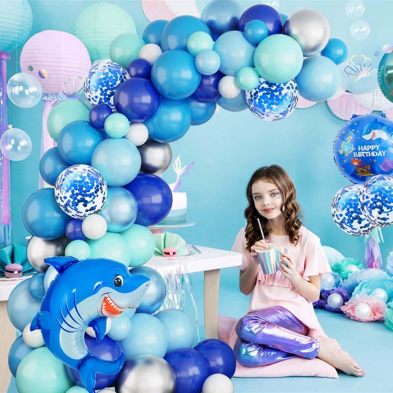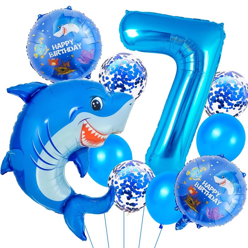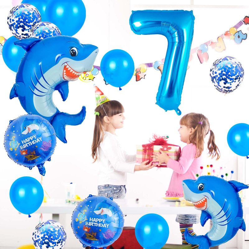 - Number 7 Balloons: With this shark-themed kids birthday decorations, the blue of the ocean will bring a cool feeling to your summer party and make your child's birthday more enjoyable!
