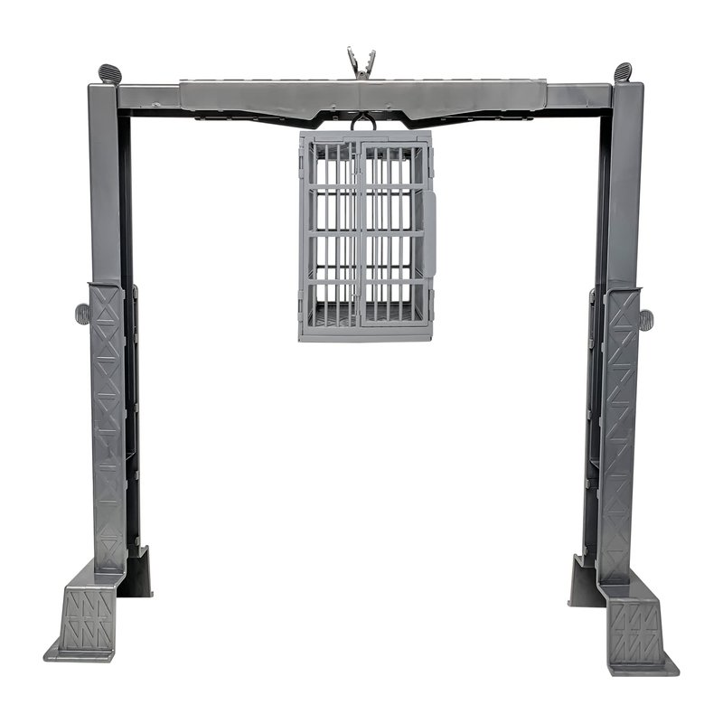 Our Grab The Gear Playset has been given an upgrade! Now, besides just reaching for championship gold, your wrestling figures can raise their rivals high above the ring in the Shark Cage! This all new accessory from Figures Toy Company has been inspired by classic matches where troublemaking managers were forced into the cage to prevent them from interfering. Just trap one of your wrestling figures inside the Shark Cage, hook it to our Grab The Gear playset, and rise it up over the ring! You can also leave the Shark Cage hanging while your figures battle atop the scaffold area of the playset, or keep it at ringside during championship bouts! All of these options add up to hours of fun with the Shark Cage & Grab The Gear Playset!