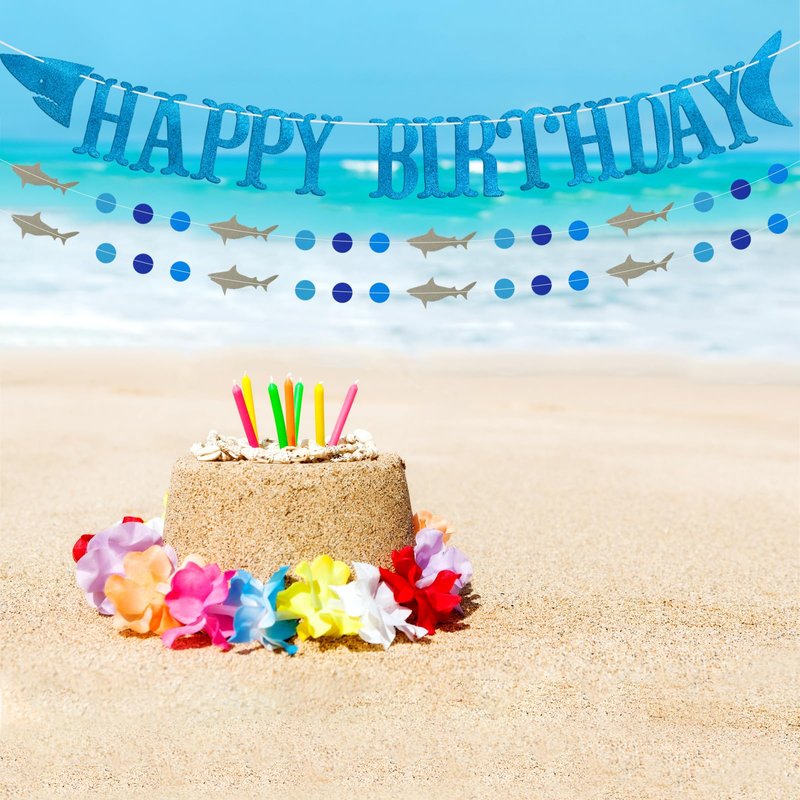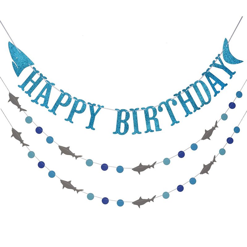- This glitter shark happy birthday banner & shark garlands will bring a touch of sparkle to your event!