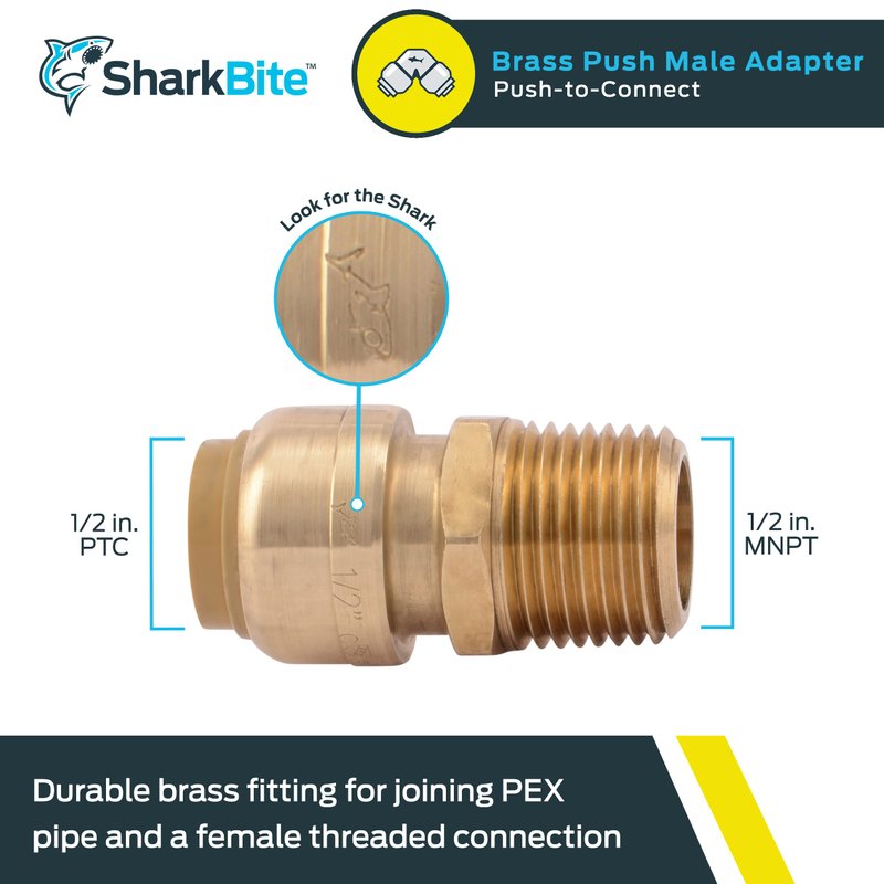 SharkBite 1/2 Inch MNPT Adapter, Push to Connect Brass Plumbing Fitting, PEX Pipe, Copper, CPVC, PE-RT, HDPE, U120LFA, Brass