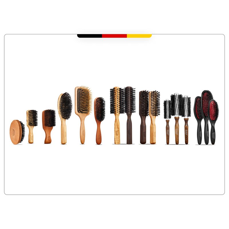 - MADE IN GERMANY: Crafted with 100% pure boar hair, our bristle brush delivers quality you can trust! The olive wood handle is ecologically sourced and finished with a nut wood varnish, providing you with world-class workmanship you’ll use for years.
