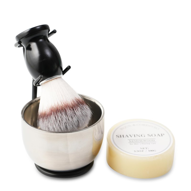 - Ideal Shaving Set - Every set has a brush, sandalwood scented shaving soap, stainless steel bowl and stand. This set is ideal for beginners to get started or someone who wants to buy a nice gift.