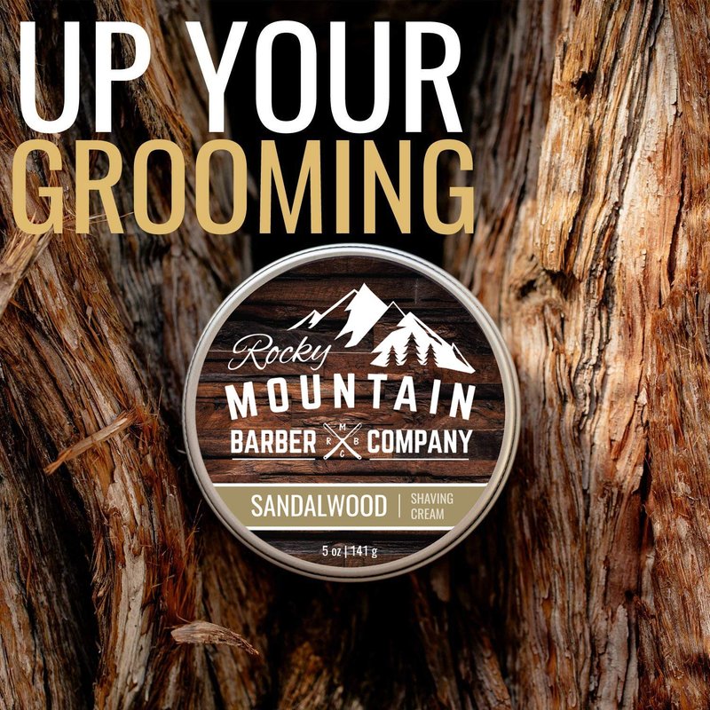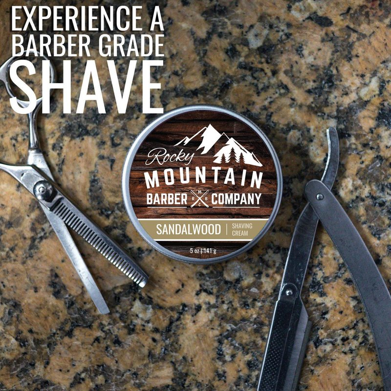 Shaving Cream for Men with Sandalwood Essential Oil - Thick Lather for Traditional and Cartridge Shaving - by Rocky Mountain Barber Company – 5oz Tin