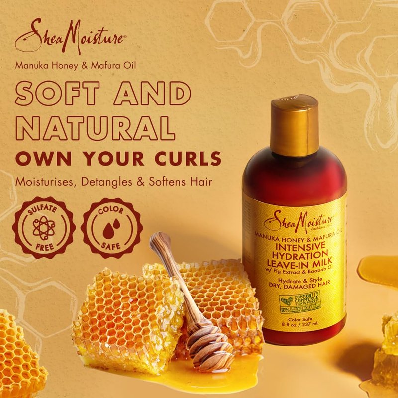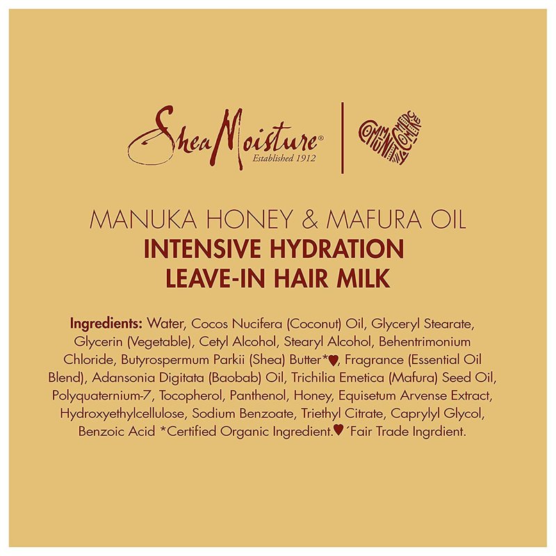 Shea Moisture Manuka Honey and Mafura Oil Intensive Hydration Leave-In Milk for Unisex, 8 Ounce
