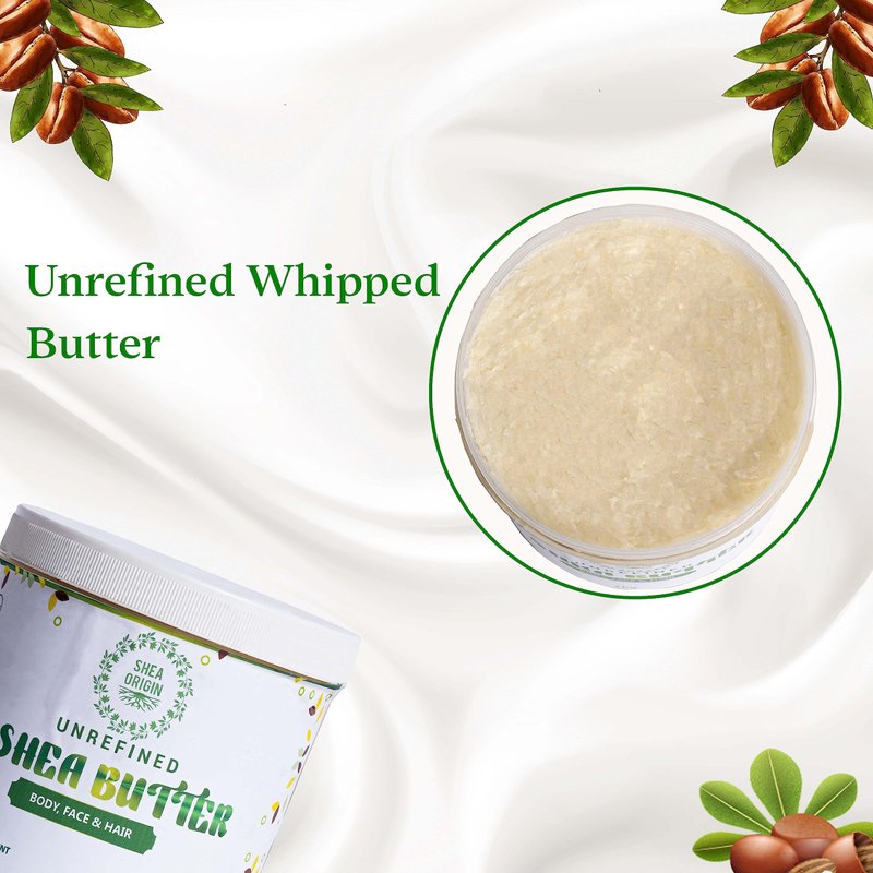 Shea Origin Unrefined Shea Butter is made from naturally sourced shea nuts in Africa and processed into butter by professional shea butter processors from one of West Africa’s biggest countries, Nigeria. Our raw shea butter comes with a light ivory color with its nutty odor removed thanks to a mild steam treatment that doesn’t degrade any constituent. This means you get to use shea butter as nature intended - all its precious skin moisturizing, anti-aging, and healing properties are still intact. Shea Origin's shea butter is all quality, with no “green-washing”. Our natural raw shea butter is a natural remedy to skin conditions such as eczema, sunburn, rashes, and peeling and offers relief within the shortest period of time. It also fades wrinkles, stretch marks scars, and blemishes which can damage the skin’s natural texture. Our pure shea butter is a natural moisturizer that is smooth on the skin and absorbs easily leaving no residue when applied.