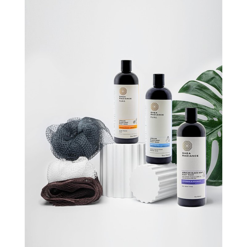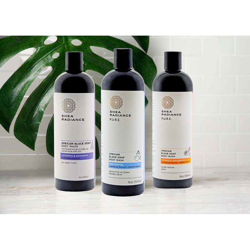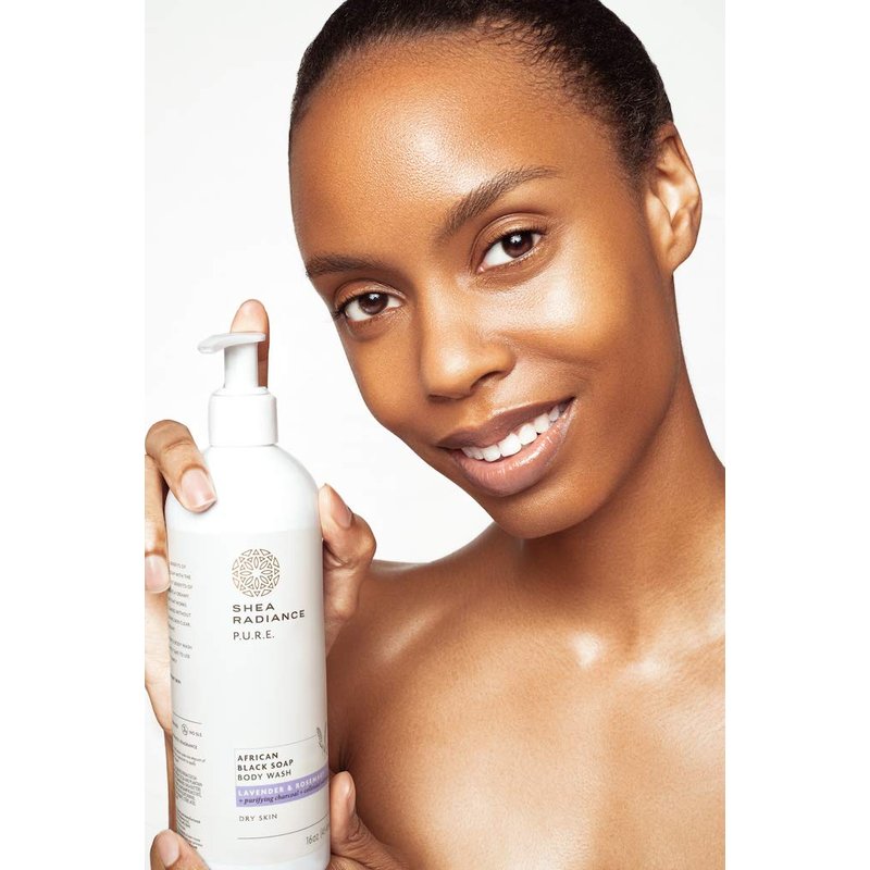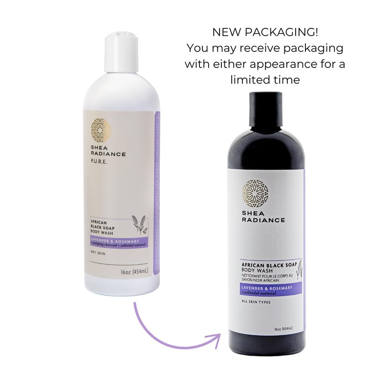 Shea Radiance African Black Soap Body Wash - Dry Skin, Eczema, Rashes, Blemish Cleanser | Lavender Rosemary (16 oz)