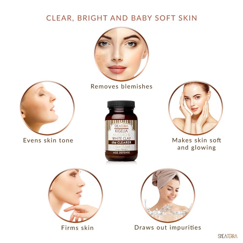Shea Terra Kigelia Age Defense Collection - Clearing Face Mask | Natural, Anti-Aging Face Mask with Mussiro & White Clay to Purify and Soften Skin for Clear, Bright & Baby-Soft Skin – 5oz