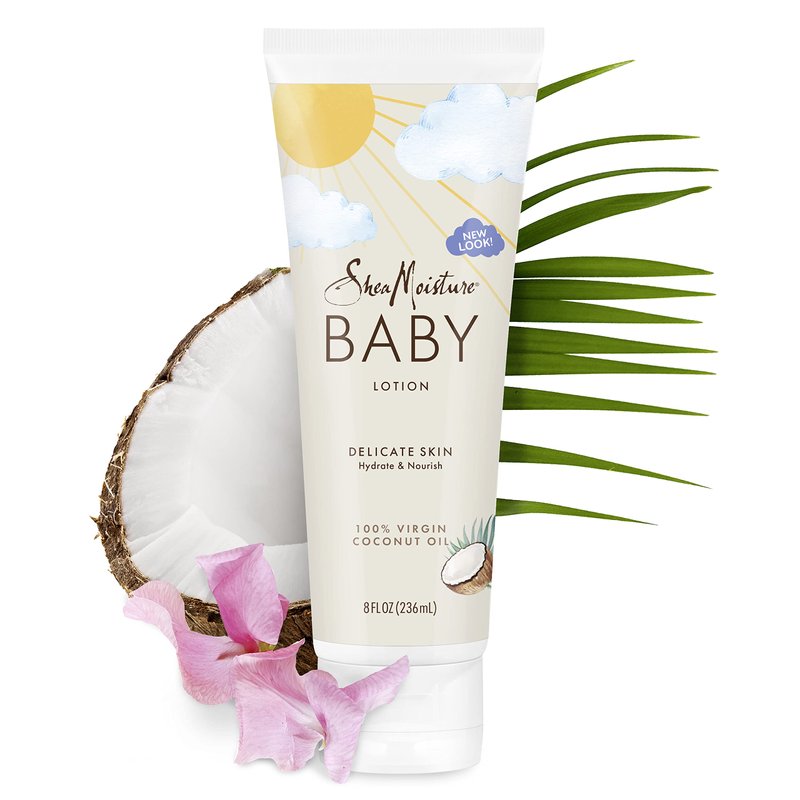 - Use this Coconut Oil baby and newborn moisturizer after bath or anytime baby skin needs an extra kiss of moisture. This baby lotion and baby cream by SheaMoisture soothes dry skin