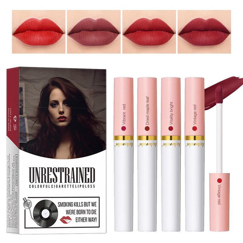 SHEEPFLY 4 Color Lip Gloss Cigarete Lipstick Set,Velvet Lipstick Cigaretes Non-sticky,24-Hour Long Lasting Waterproof Matte Lipstick Tube Sexy Nude Lady Lipstick lip gloss (3#)