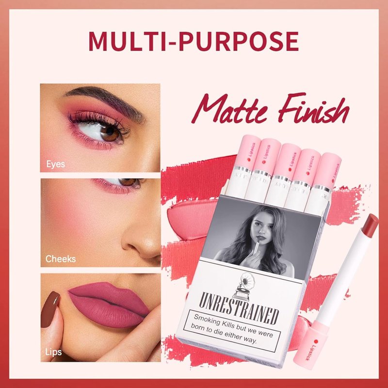 SHEEPFLY 5 Colors Matte Cigarete Lipstick Set,Durable Water Resistant Sweat Not Off Makeup Ladies Lipstick, Velvet Lipstick(5 Colors)