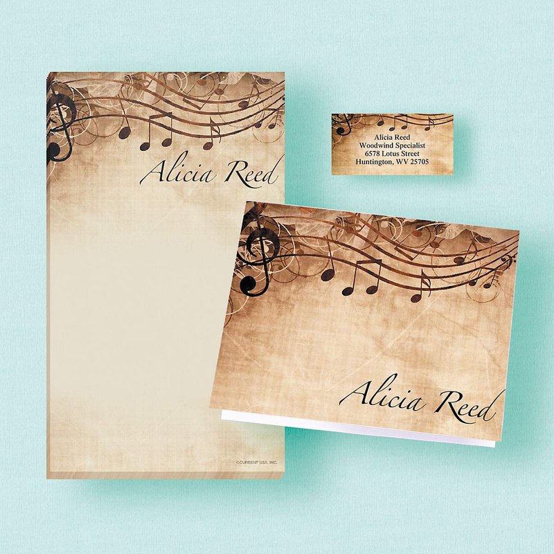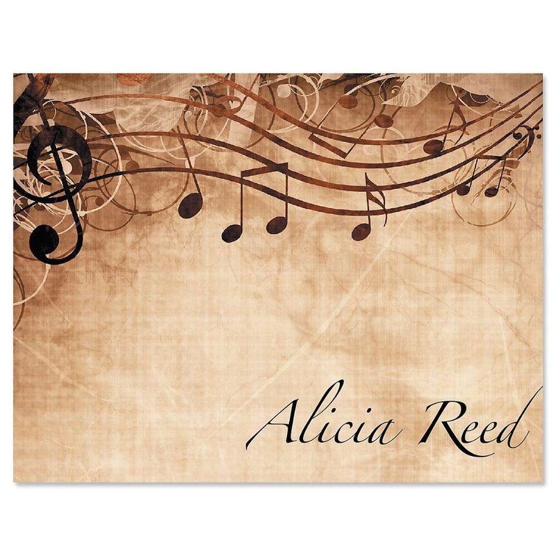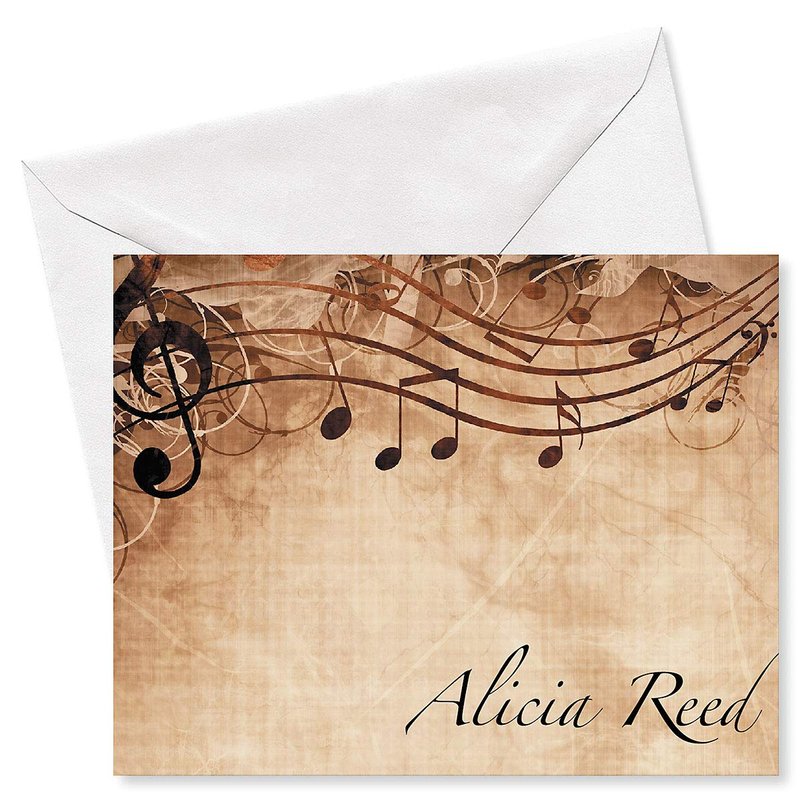 Sheet Music Personalized Note Card Set - 24 Cards with White Envelopes, 4¼ x 5½ Inch Size, Blank Inside, Add a Name, For Music Teacher Gift, Musician Gift…