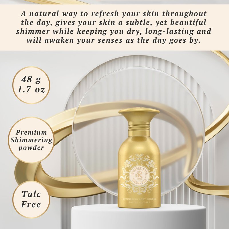 Shelley Kyle Signature Talc Free Shimmer Powder, Body Powder, Dusting Powder, Leaves Skin Soft, Dry, Smooth, and Shimmering, 48g