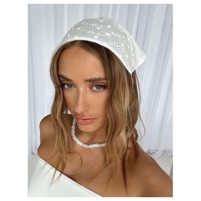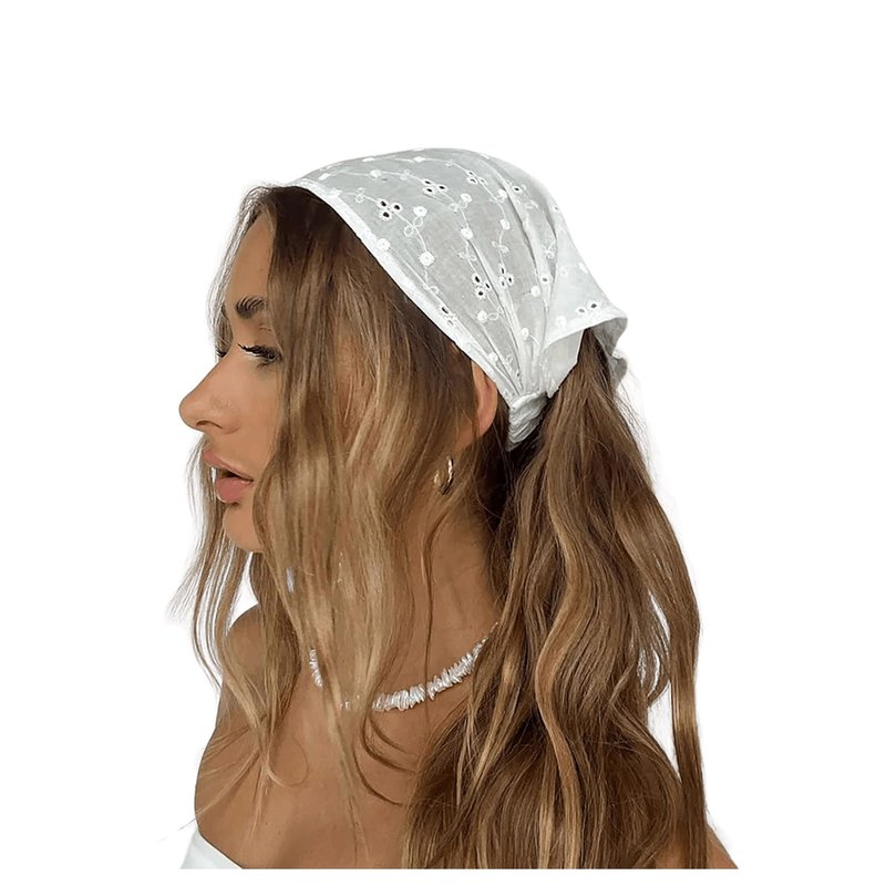 - Elevate your everyday look with this exquisite head scarf. The intricate eyelet design adds a touch of sophistication, making it a versatile accessory for any occasion.
