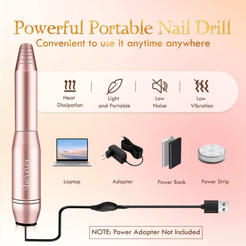 - 【Portable & Easy to Use】This electric nail drill file is made of high-quality metal, compact and lightweight. With adjustable speed and direction controllers, it is easy for beginners and manicurists of all levels to use. You can connect the power cord (without adapter) to any USB device to create nail art anytime anywhere.