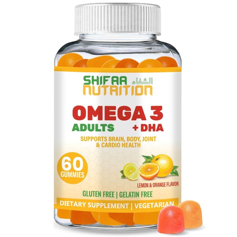 SHIFAA NUTRITION Omega 3 Gummies with DHA support Brain function, Immune System, Bones, Heart Health, and Joints.