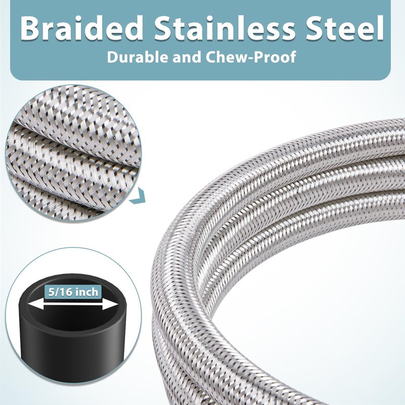 - More Durable - Stainless braided hose (5/16" ID) prevents whatever animals from chewing through it