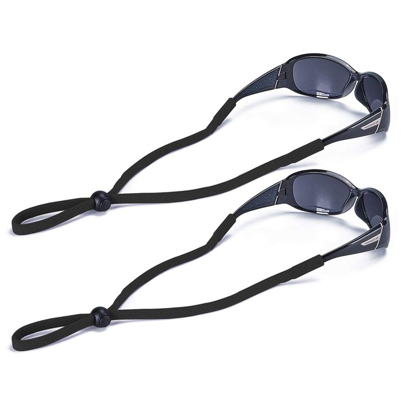- Hold Eyeglasses in Place, Quick & Easy to Put on And Remove - Each sunglasses cord is 11.8 inches long, with a black anti-slip spring button slider that can be adjusted as tightly or loosely as you want. The tubes on the ends tightly grip temples to secure glasses to head when cinched. Hang the lanyards-style sunglasses retainer around your neck when not in use and you’ll never lose your sunglasses again