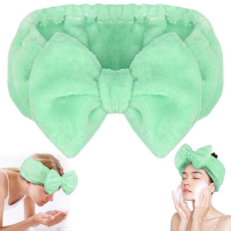 Shintop Makeup Headband, Soft Face Wash Headband with Cute Bow Elastic Spa Headband for Skincare Facial Mask Showers(Light Green)