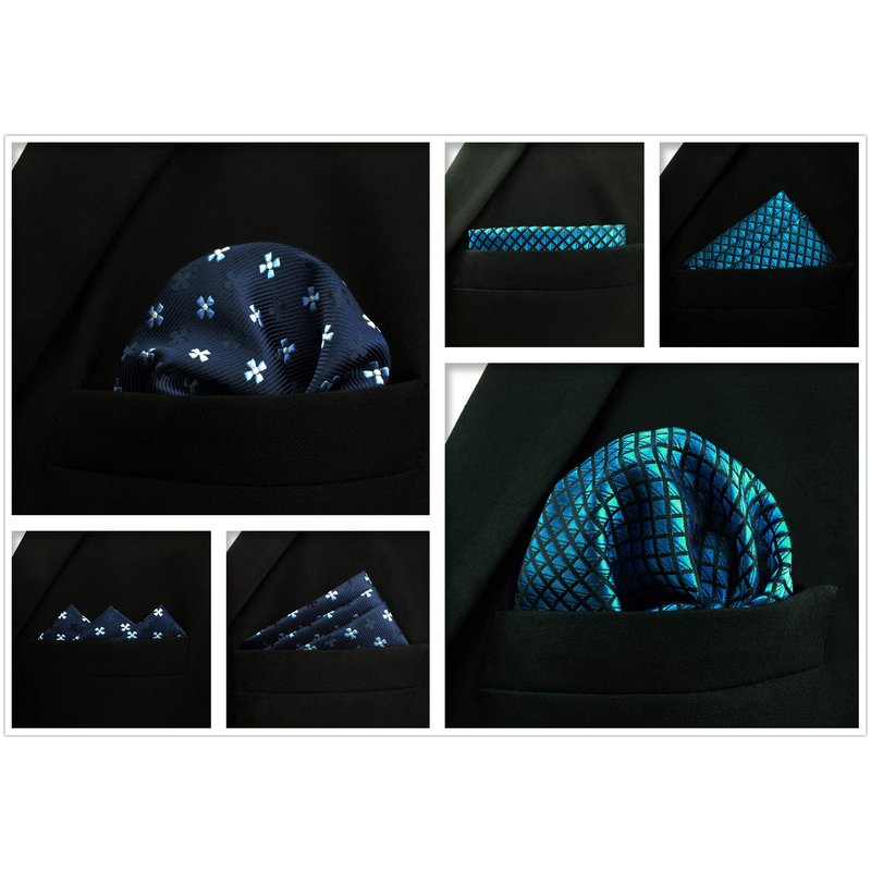 SHLAX&WING 5 Pieces Assorted Mens Silk Pocket Square Handkerchiefs Set 20
