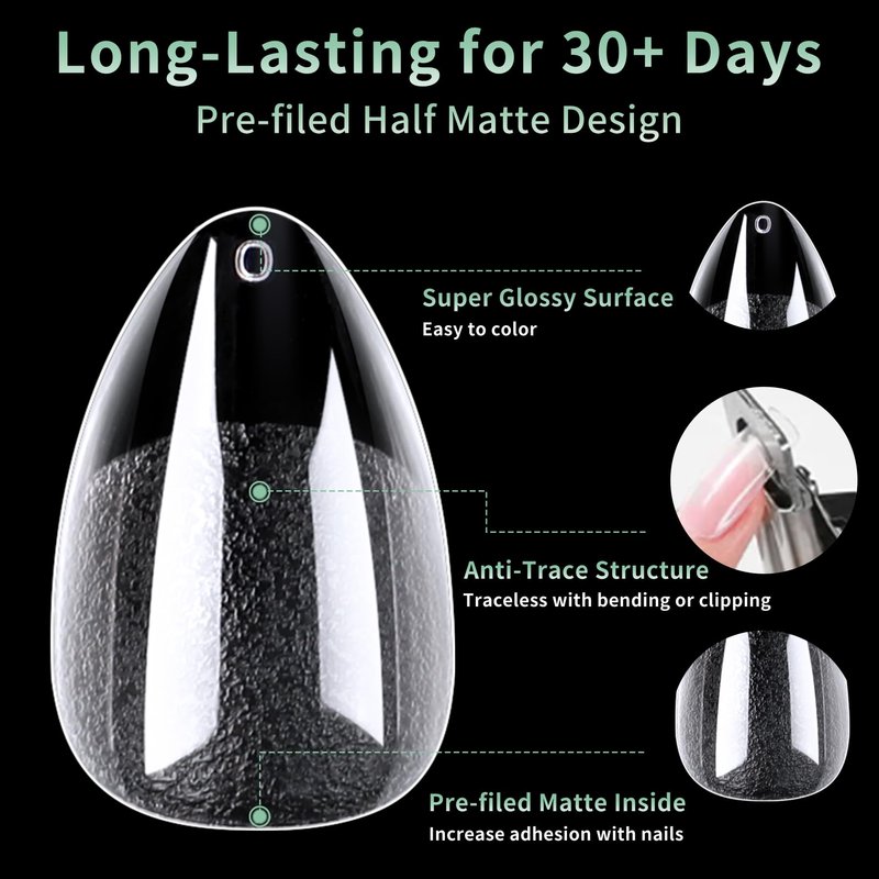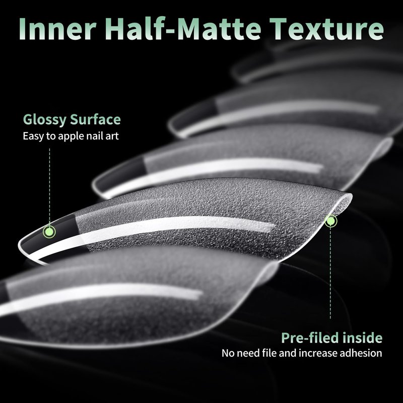 - 🎄️Upgrade Ultra Matted Short Almond Tips: Utilizes the latest 70 grit matte technology (others: >80 grit), not require filed, fit your nail directly and fit better. Save your filing time means make more nail fun, more friendly design for nail at home.