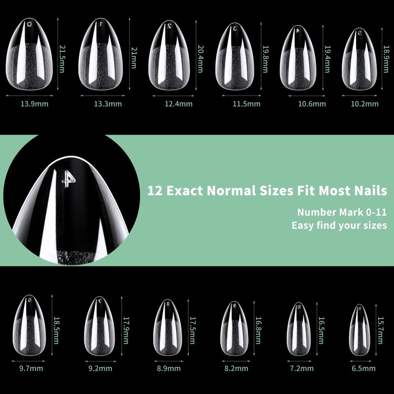 - 🎄️12 Sizes to Fit Your Nails: These Short Almond tips come in 12 sizes, each marked with a size number for easy selection. We also include 2 extra sizes (No.0 and No.11) to ensure a perfect fit for large or small nails, providing a customized manicure experience.
