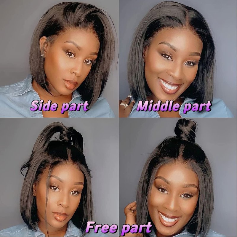 Short Bob Wig Human Hair Straight Bob Wigs For Black Women Human Hair 10 Inch Bob Lace Front Wigs Human Hair Glueless Wigs Human Hair Pre Plucked Short Wigs HD Closure Wigs Human Hair Natural Black