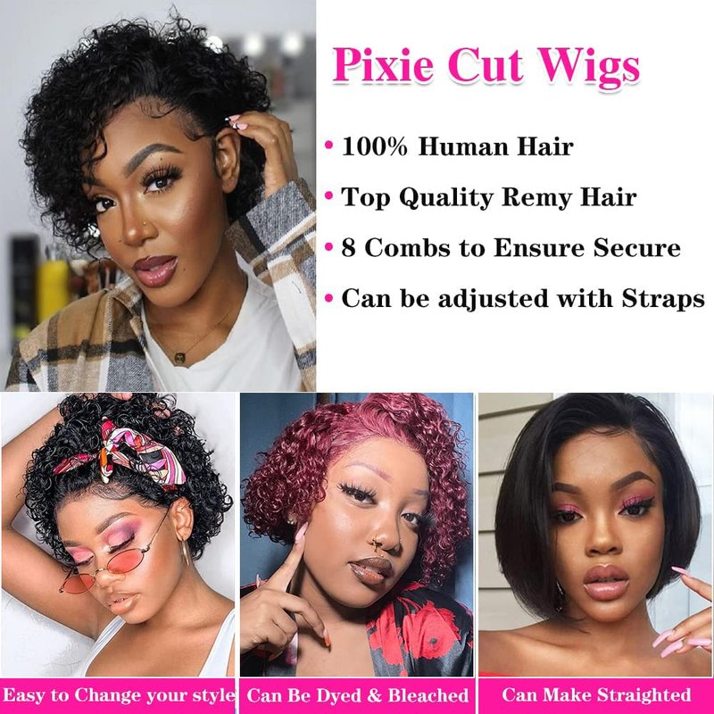 Short Curly Human Hair Wigs Pixie Cut Bob Glueless Wigs Front for Black Women with Baby Hair, 13x1 Lace 180% Density Pre Plucked HD