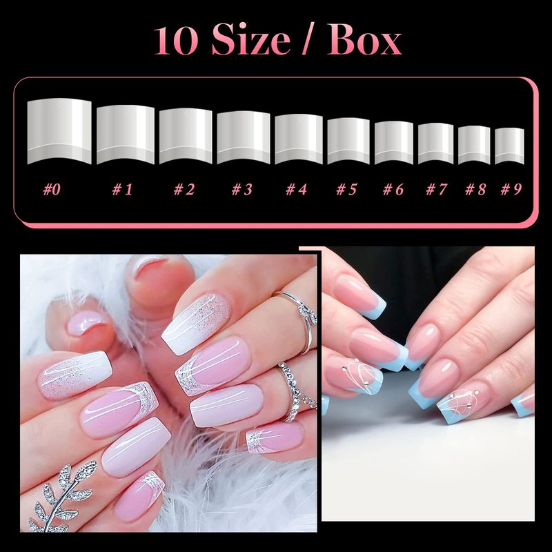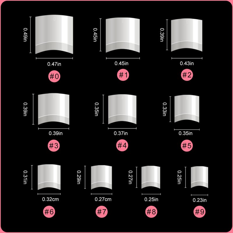 - Different Size -- The acrylic french nails short offer 10 different sizes with 10 nail tips are packed in a bag with number. Each size numbered 0-9 individually, so they're convenient to choose the most suitable size that fits your every finger.