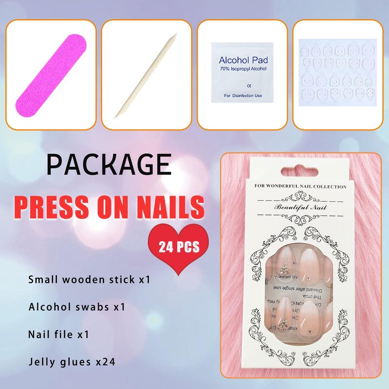 - 💗You Will Get: The package contains 24 pieces of french tip almond press on nails short of different sizes, 1 mini nail file, 1 small wooden stick, and 1 piece of nail glue sticker. (Jelly glue can last about 3 days or more, glue remains longer)
