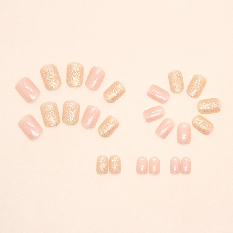 Short Press on Nails Nude Pink Fake Nails Gold Glitter False Nails with Designs Full Cover Artificial Nails Square Shape Acrylic Nails Glossy Stick on Nails Cute Glue on Nails for Women Girls Manicure