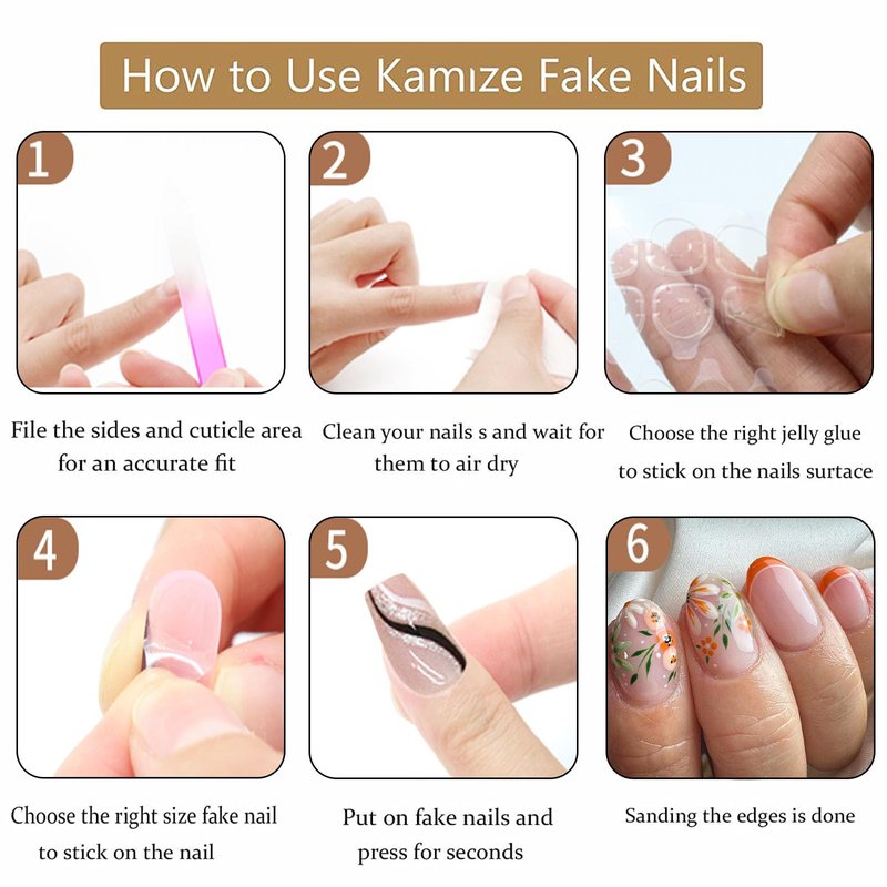 - You can use the nail stickers we give you (use the nail stickers, and the false nails can be reused). However, nail glue strips are not as effective as liquid nail glue. If you want the glue on your nails to last longer, you can use liquid nail glue, which lasts for 1-2 weeks.