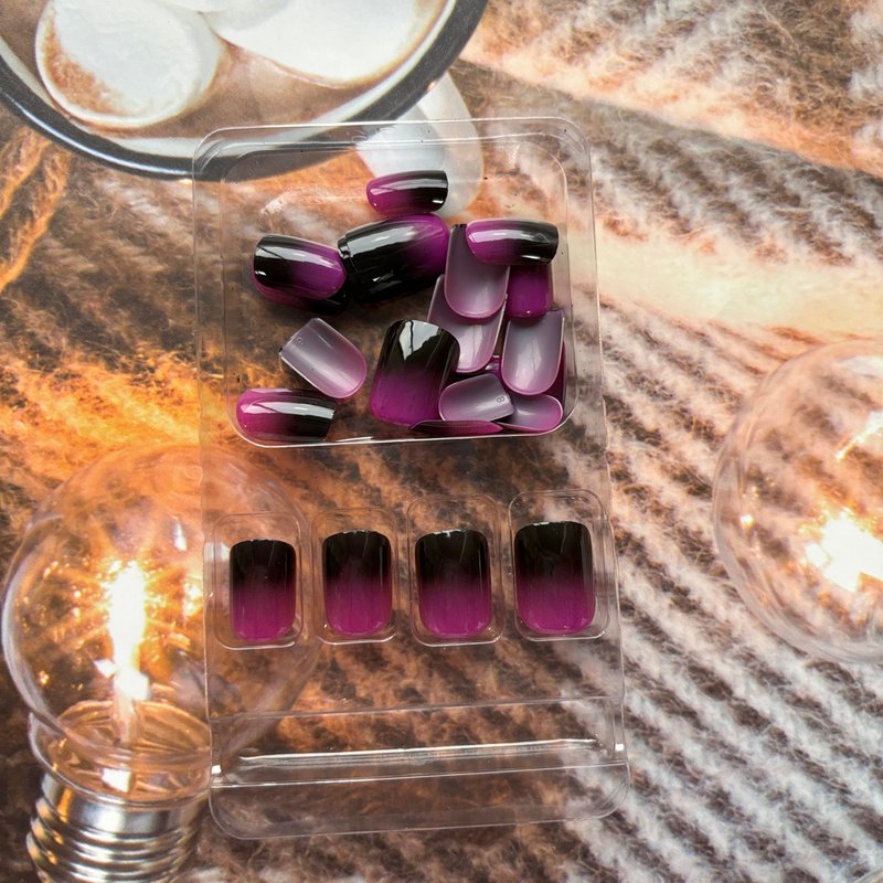 Short Press on Nails Purple Fake Nails Gradient Purple Black False Nails with Gradient Designs Square Shaped Glue on Nails Cute Stick on Nails Full Cover Acrylic Nails Glossy Artificial Nails 24Pcs