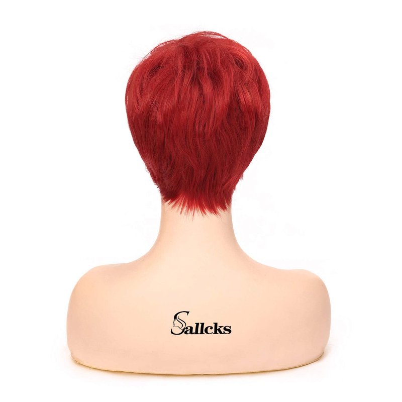 - 【Adjustable Size】Short red layered wig with bangs fits most people,you can adjust the hook inside the cap to the correct size to suit your head.