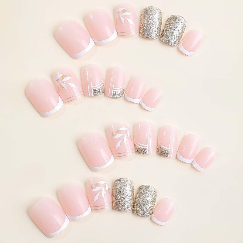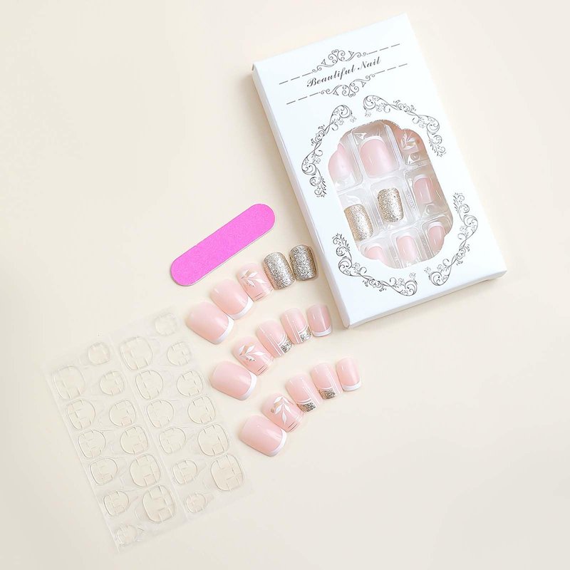 - 【Perfect Gift】French gold glitter glue on nails with designs can be given as a gift to your friends and relatives.It will bring them a comfortable and convenient manicure art experience.