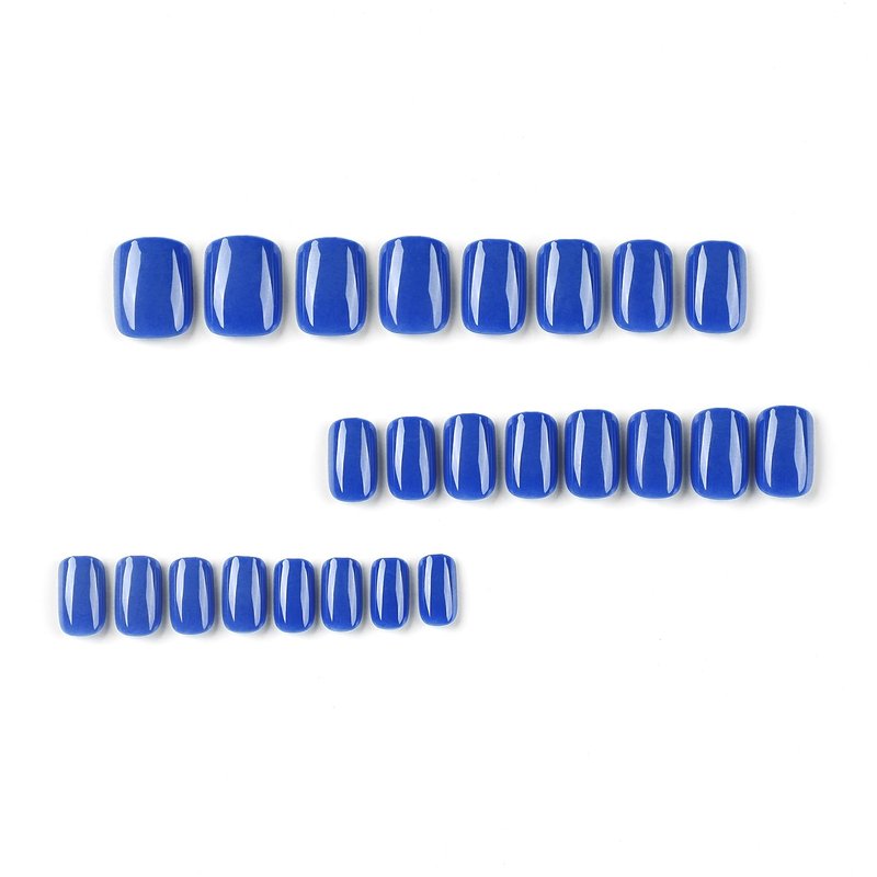 Short Square Press on Nails SWEKKE Petite Fake Nails Blue Full Cover False Nails with Nail Glue Royal Blue Solid Color Glossy Glue on Nails Stick on Nails Acrylic Nails Artificial Nails for Women Girls 24Pcs