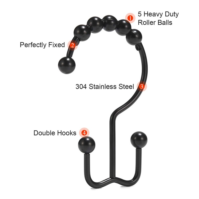 The black shower curtain hooks are made into a high-quality product through complex production steps, so that the sturdy shower curtain hooks rust proof can withstand the test of time!