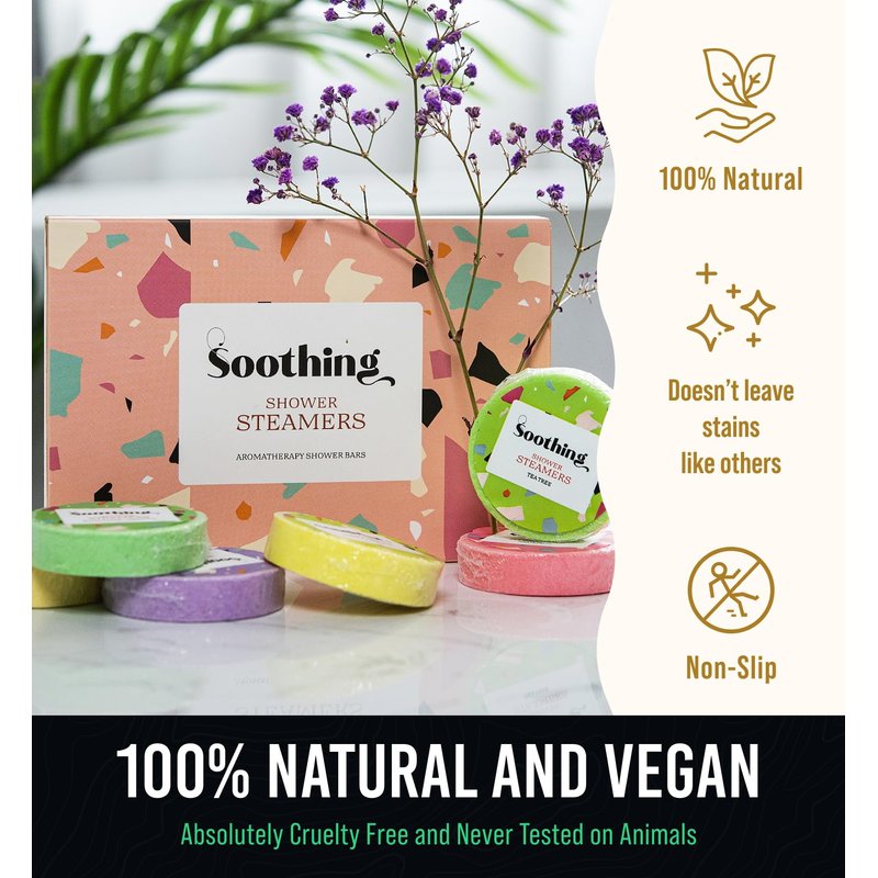- ✅NATURAL & VEGAN --- Our shower steamers are made with natural ingredients, including essential oils, baking soda, and citric acid. They do not contain any harmful chemicals or synthetic fragrances, making them safe for you and the environment.