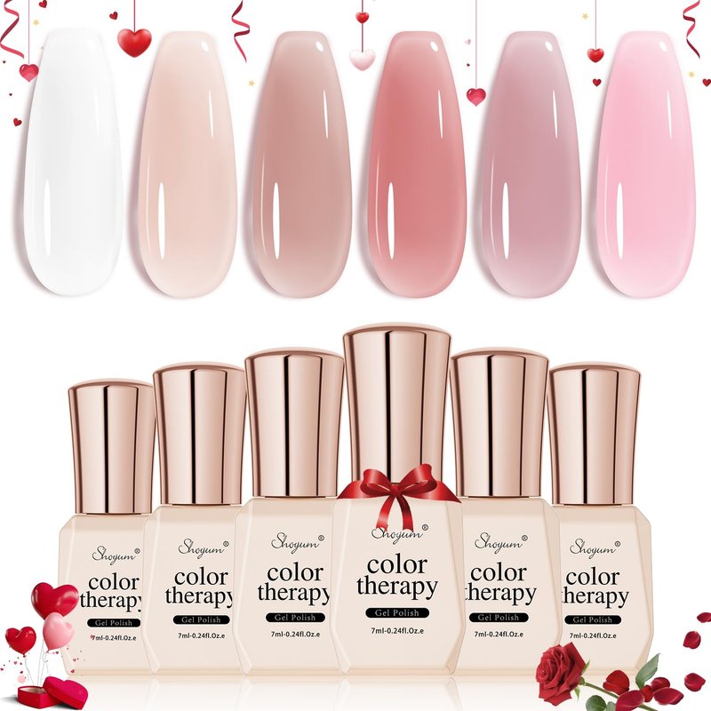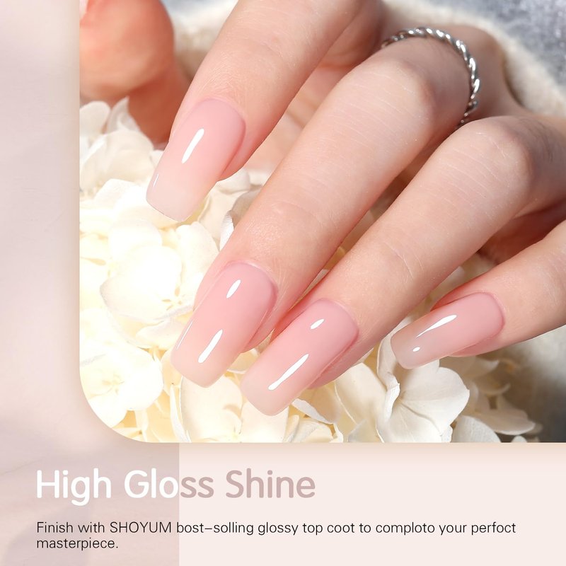 - Environmental & Healthy: SHOYUM Translucent nude pink color gel polish set is made from 9 Toxin-Free Ingredients, making it safe and low-odor. There are no harsh ingredients or adhesives that lead to damaged nails.